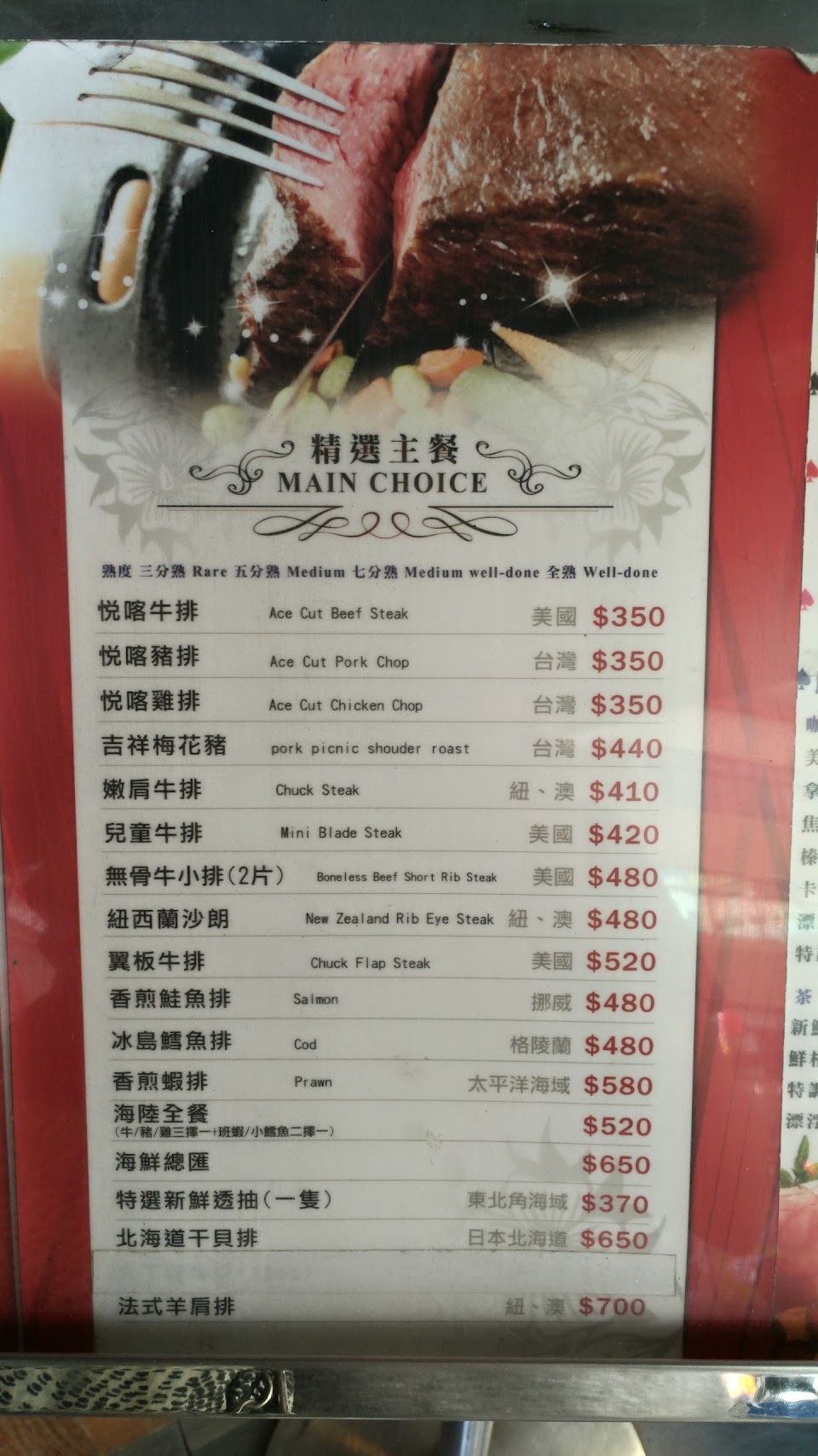 很高興收到我的訂製牛排和熱情的服務