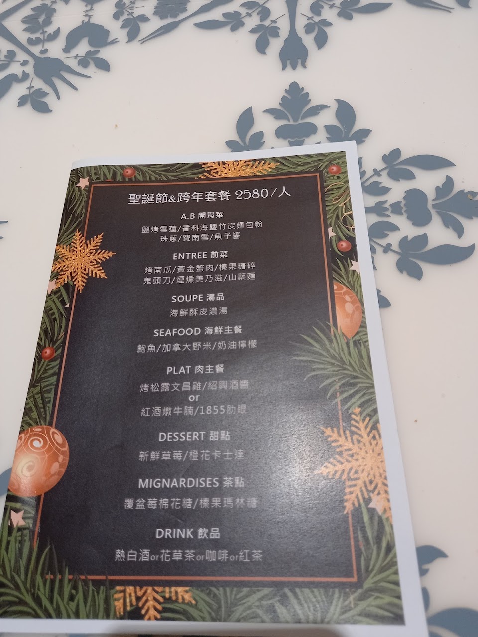 耶誕晚餐,食材新鮮實在,甜點巧思的層次口感,細膩度的擺盤,服務態度佳。♥️