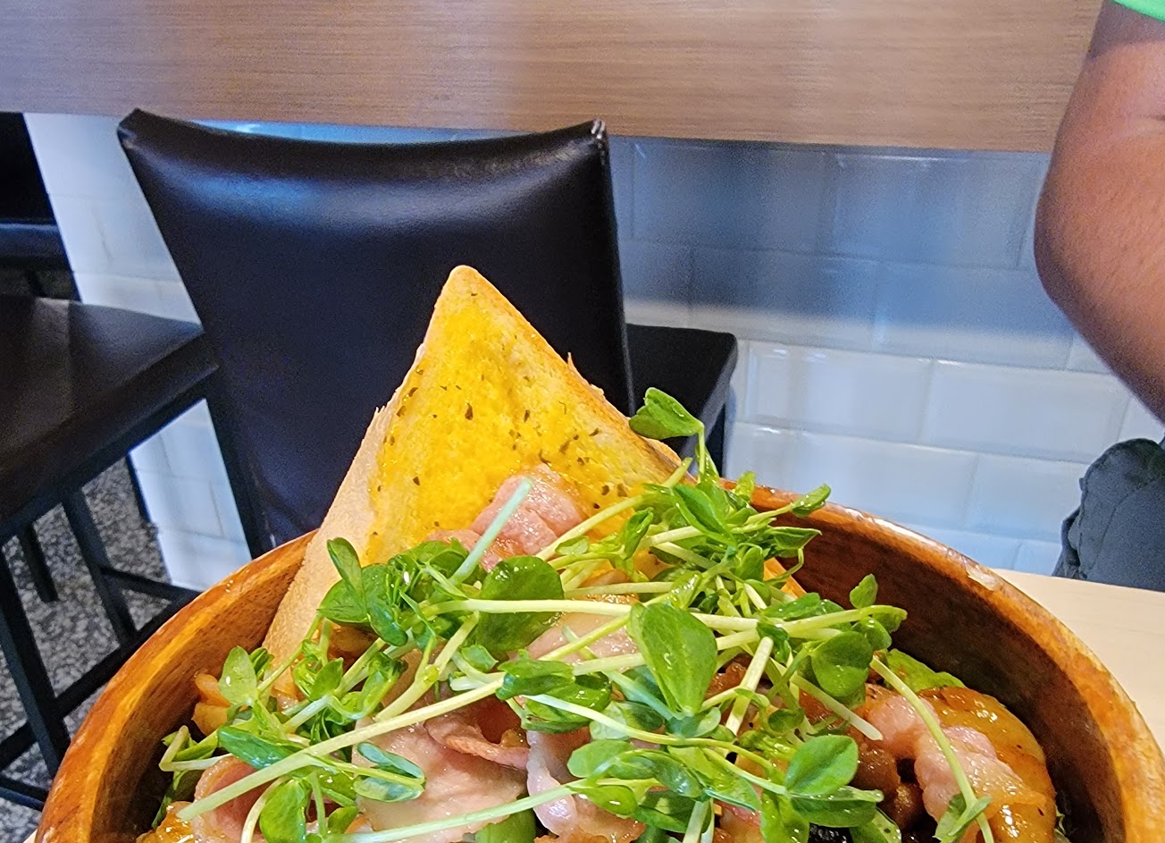 是為了他們家的沙拉來寫評論的 🥗 我點的是有雞柳的沙拉(忘了全名) 份量好大 是一個主食的分量(還附厚片吐司)而且超好吃!醬料偏多~ 喜歡清淡口味的人應該可以試試看要求醬少~ 整體來說餐點的CP很高 🔥