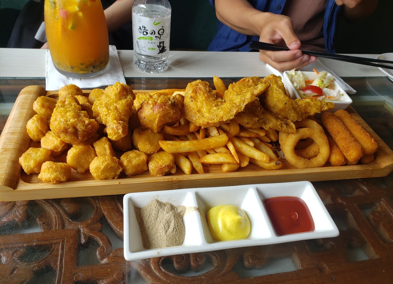 內用飲料是用最便宜的飲料店塑膠杯裝,剛開始自己還以為是因為疫情的關係才不提供馬克杯或“跟裝潢同等級的杯子”,沒想到這種裝潢之下竟然是用便宜“飲料店塑膠杯”,看別桌客人吃飯的時候也是用塑膠筷子+陶瓷碗,乾脆全部都用免洗碗+免洗筷好了,笑死!!