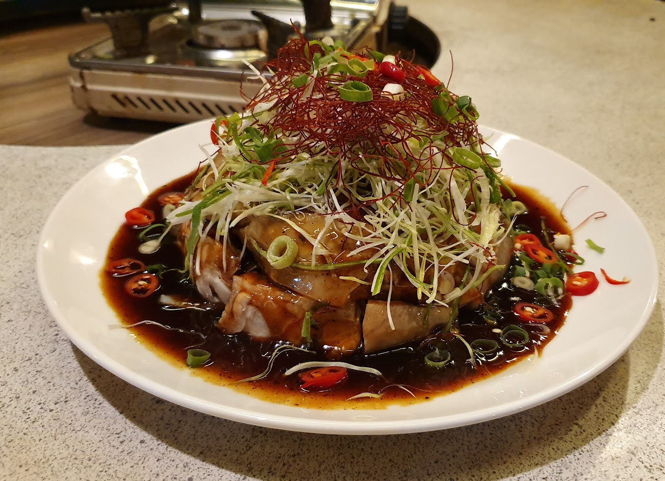 疫情期間店家間隔座位區,所以好的座位區難找,好不容易在下面找了一桌,因為鄰座客人吸煙,讓我們想再找一下位子,帶著年紀稍長的岳母上上下下階梯來回找尋,她的膝蓋不是很好,終於找到一桌剛離開收拾好確定沒人放東西,查看空了一小片刻,所以我們就坐好預填寫菜單和座位,此時一名男店員跑來就說這桌有人預定了。