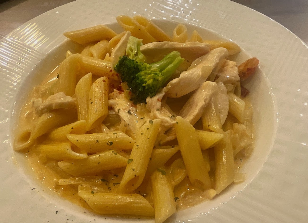 粉紅醬真的很好吃,換成筆管麵可以吸附更多湯汁,不過碎洋蔥很多,怕洋蔥者請注意