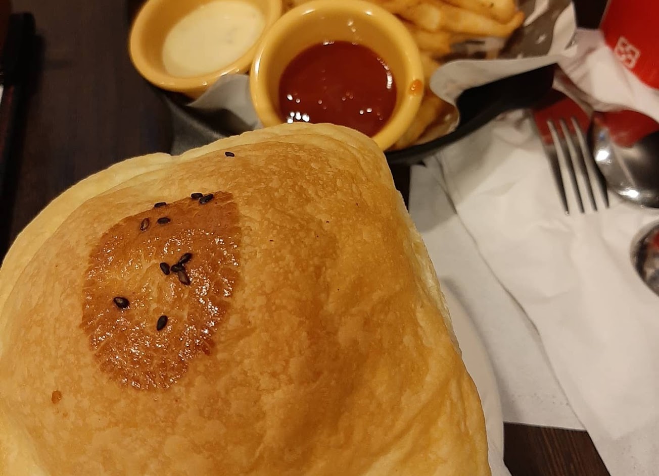 海鮮焗飯上的起司有點太牽絲~~~ 底下的飯是咖喱的味道要看個人喜不喜歡? 整體價錢平價,可以加麵,但是室內有點悶 …
