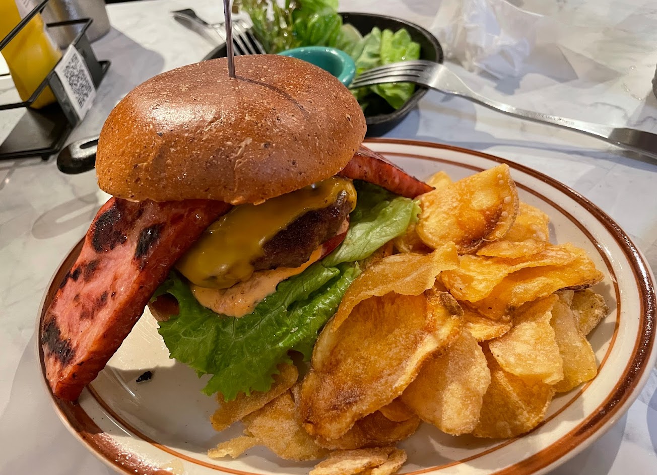 東西真的好吃!除了漢堡好吃之外,意外吃到別的地方沒有的附餐炸薯片,口味是淡淡的甜還有一絲肉桂的味道,水牛城辣雞翅也很夠味。店家人更是親切到不行,看到我們擺餐後桌子有點擠,還另外搬空著的椅子到桌邊放原本在桌上的調料,讓我們能夠更舒服的用餐,是個很美好的用餐體驗~