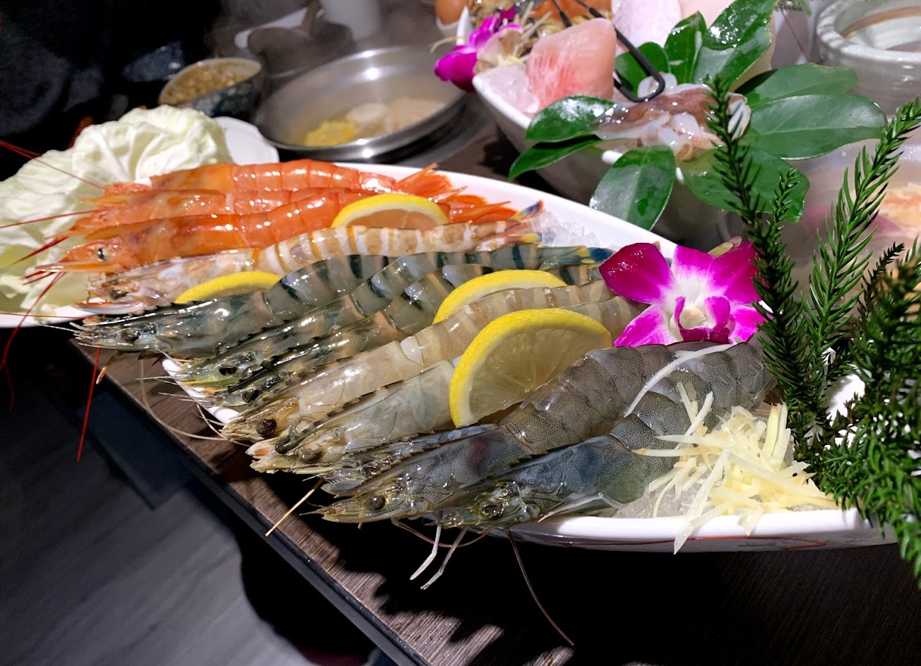 最驚艷的是海鮮類!新鮮吃得出來,藍鑽蝦超級鮮甜,入口彈牙,吃不過癮可以叫他的拼盤,天使蝦、草蝦、明蝦,吃到火鍋湯頭顏色都變紅,根本一個過癮。蔬菜是其次,非常清脆,年輕老闆很親切,目前是我的火鍋名單第一名,招呼重要朋友必來