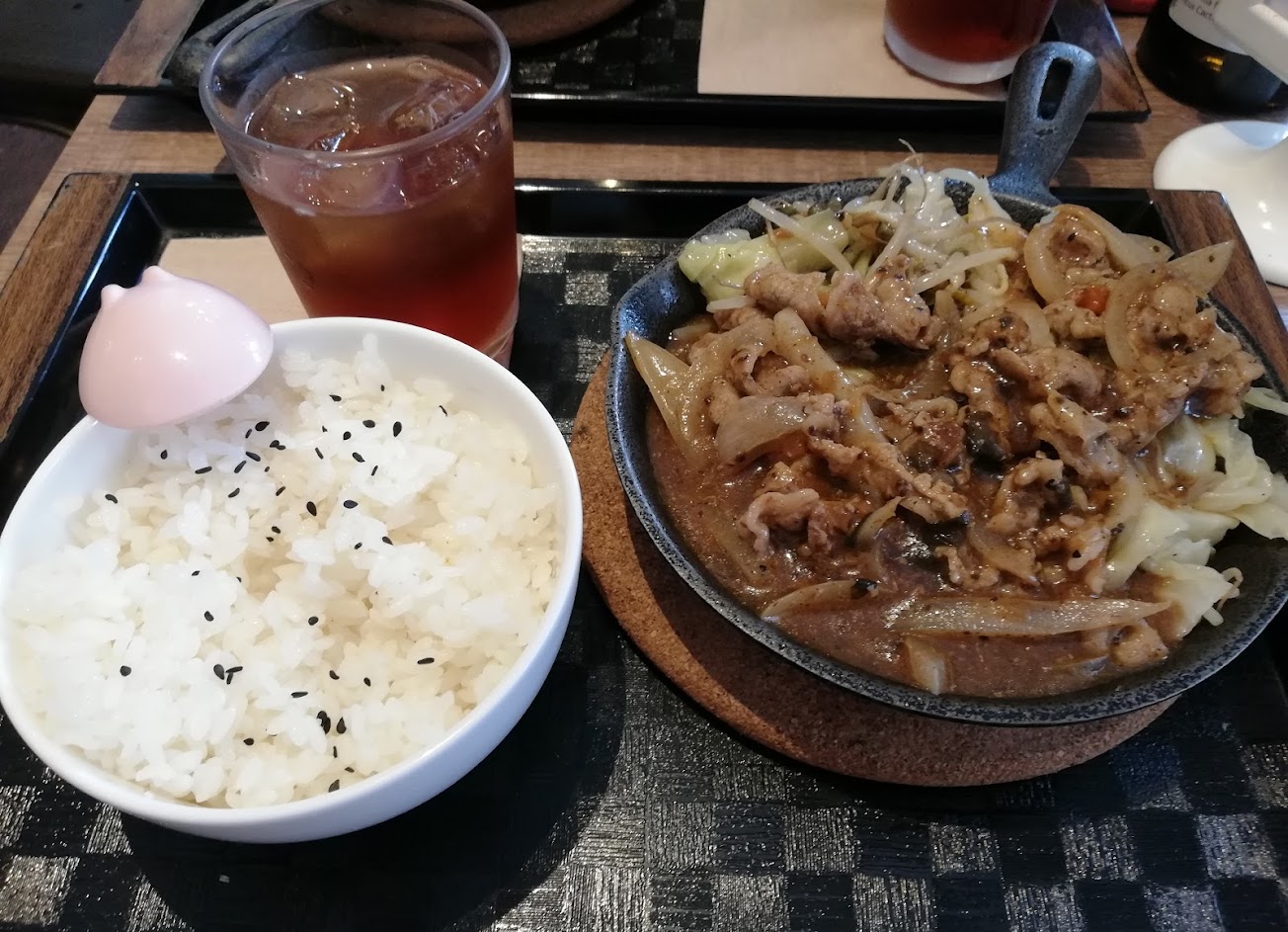 以為是早午餐興沖沖過來,發現十一點後只供應丼飯和鐵鍋(鐵板燒)定食。吃不到看起來很好吃的三明治。鐵鍋用黑胡椒醬有點太辣,附超大碗白飯(我吃不完)和小杯冰紅茶伯爵紅茶(好喝)。