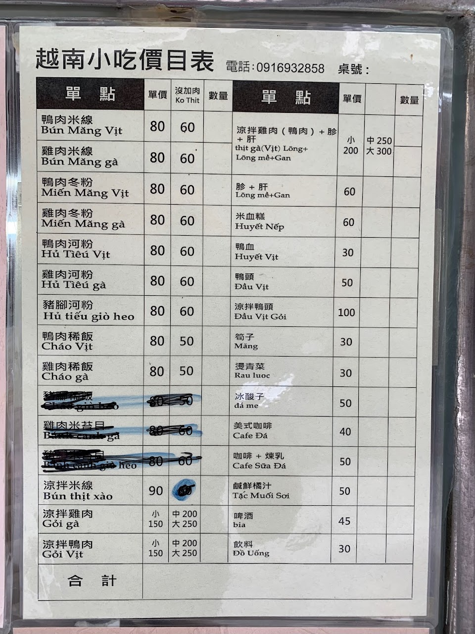 與台灣其他越南餐廳不同,這家餐廳不提供許多台灣常見的傳統越南菜餚。其特色是鴨肉,如筍/鴨米粉湯或鴨肉粥。由於食物的正宗,吸引了許多越南人。我特別喜歡他們美味的鴨肉內臟沙拉和竹鴨米粉湯,不過,我買了兩份外賣,一份是