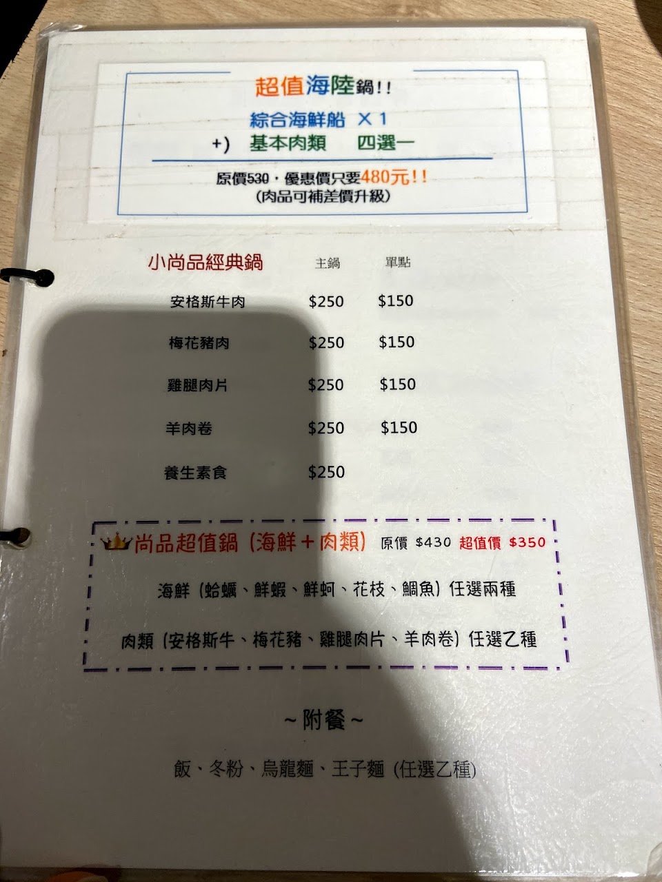 2024最新在地推薦餐廳的菜單_小尚品精制鍋物-木柵店的菜單、圖片