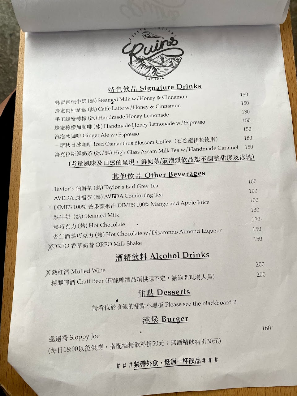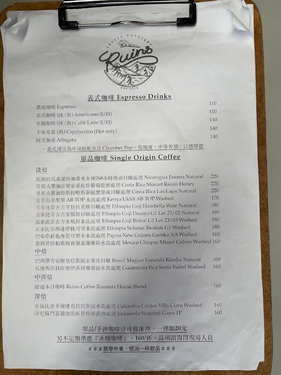 2024最新在地推薦餐廳的菜單_Ruins Coffee Roasters的菜單、圖片