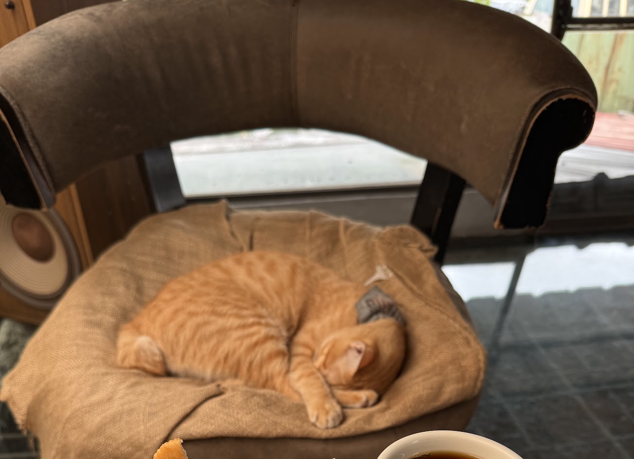 兩杯咖啡、兩份甜點、一隻貓,可以讓我待一個下午的好店。
