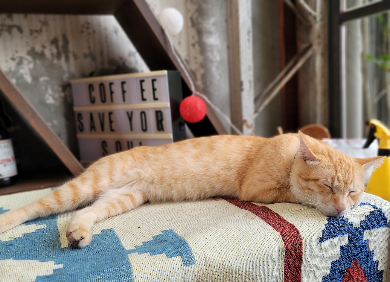 很有特色的咖啡店,應該是老屋整修過的特色建築,但超過165公分的要彎腰上樓小小頭頂。店裡有隻橘貓很悠哉。咖啡呢就還可以,或許可以試試甜點。