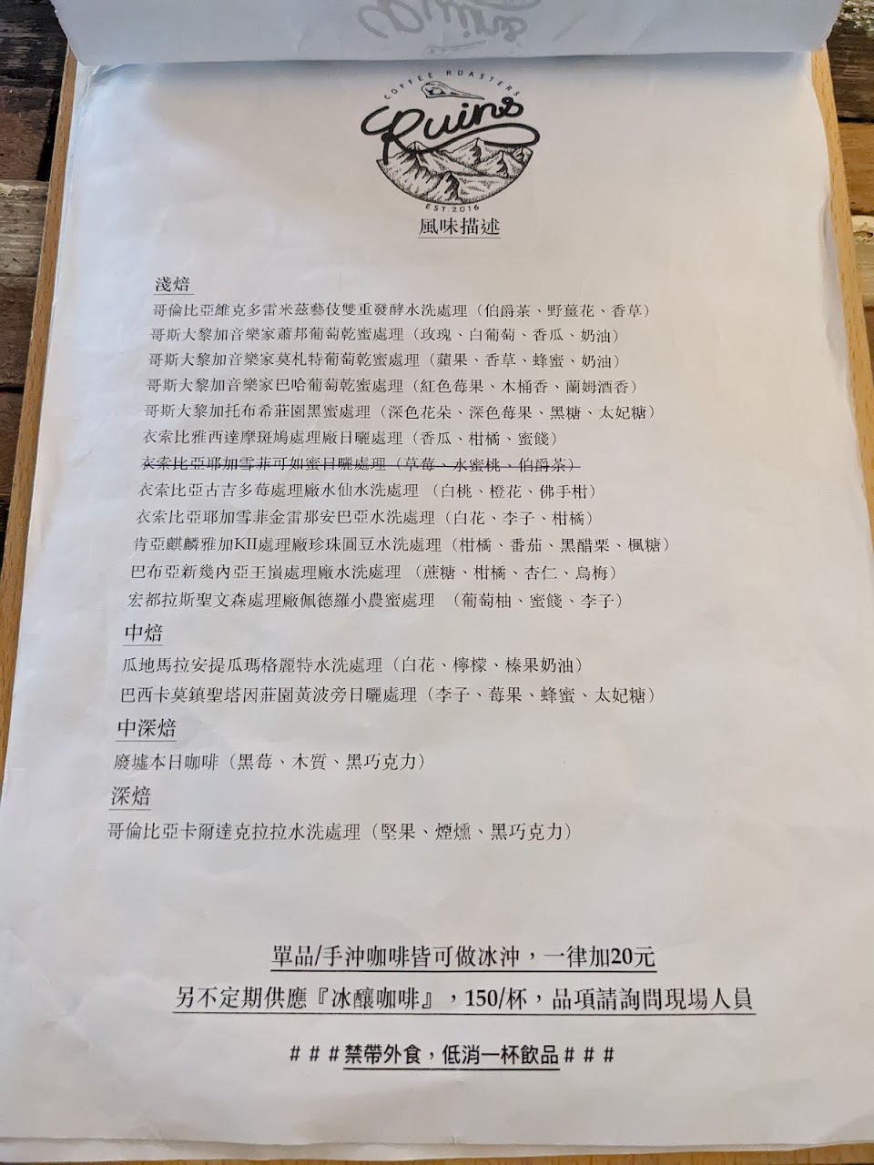 2024最新在地推薦餐廳的菜單_Ruins Coffee Roasters的菜單、圖片