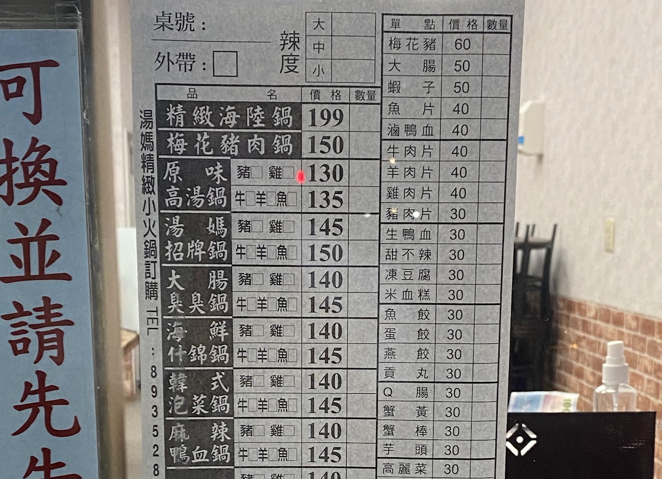 2024最新在地推薦餐廳的菜單_湯媽精緻小火鍋的菜單、圖片