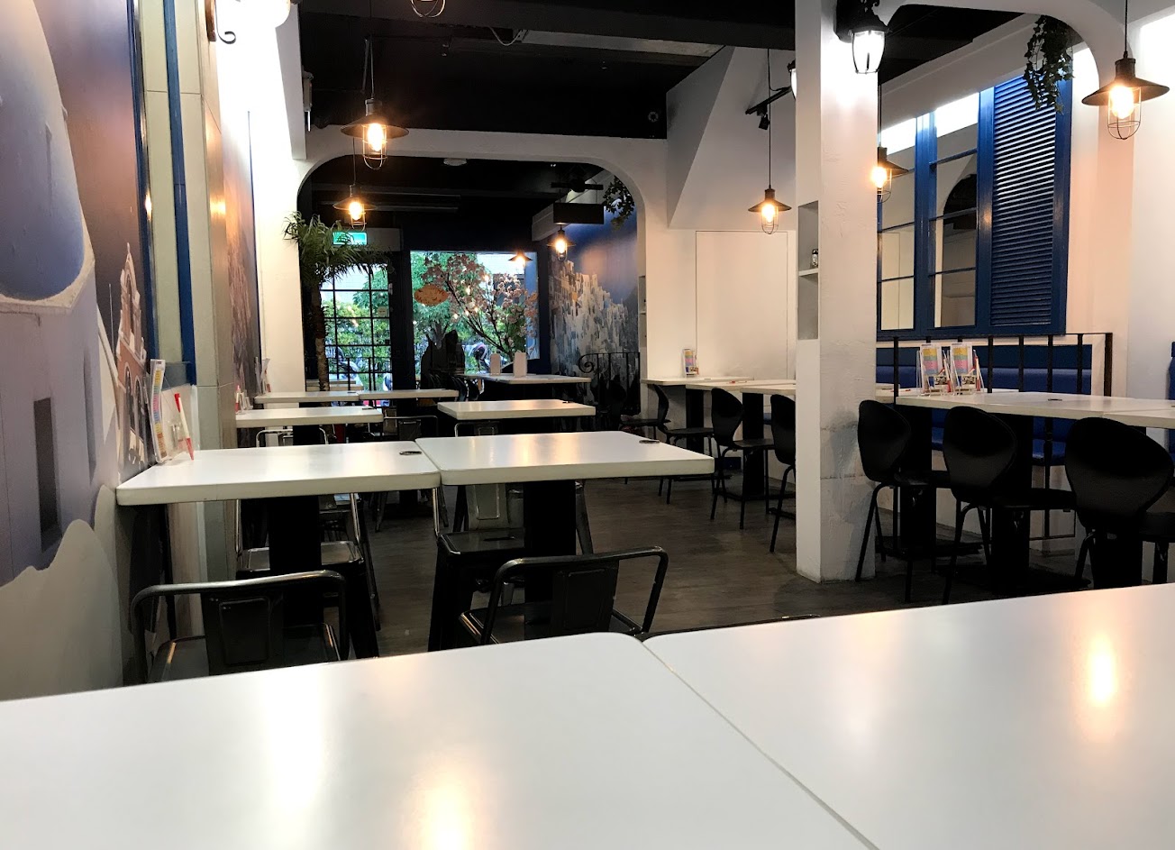 用餐環境裝飾,採用地中海希臘風格,味道尚可,點了一份青醬海鮮總匯義大麵,單價170元食用,以大學校區旁的餐飲店而言,份量偏少,男生可能會有吃不飽的感覺。