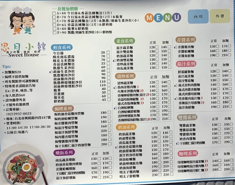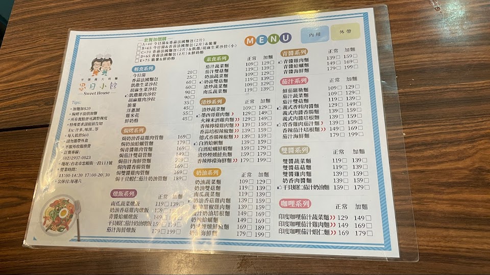 2024最新在地推薦餐廳的菜單_思月小館義大利麵的菜單、圖片