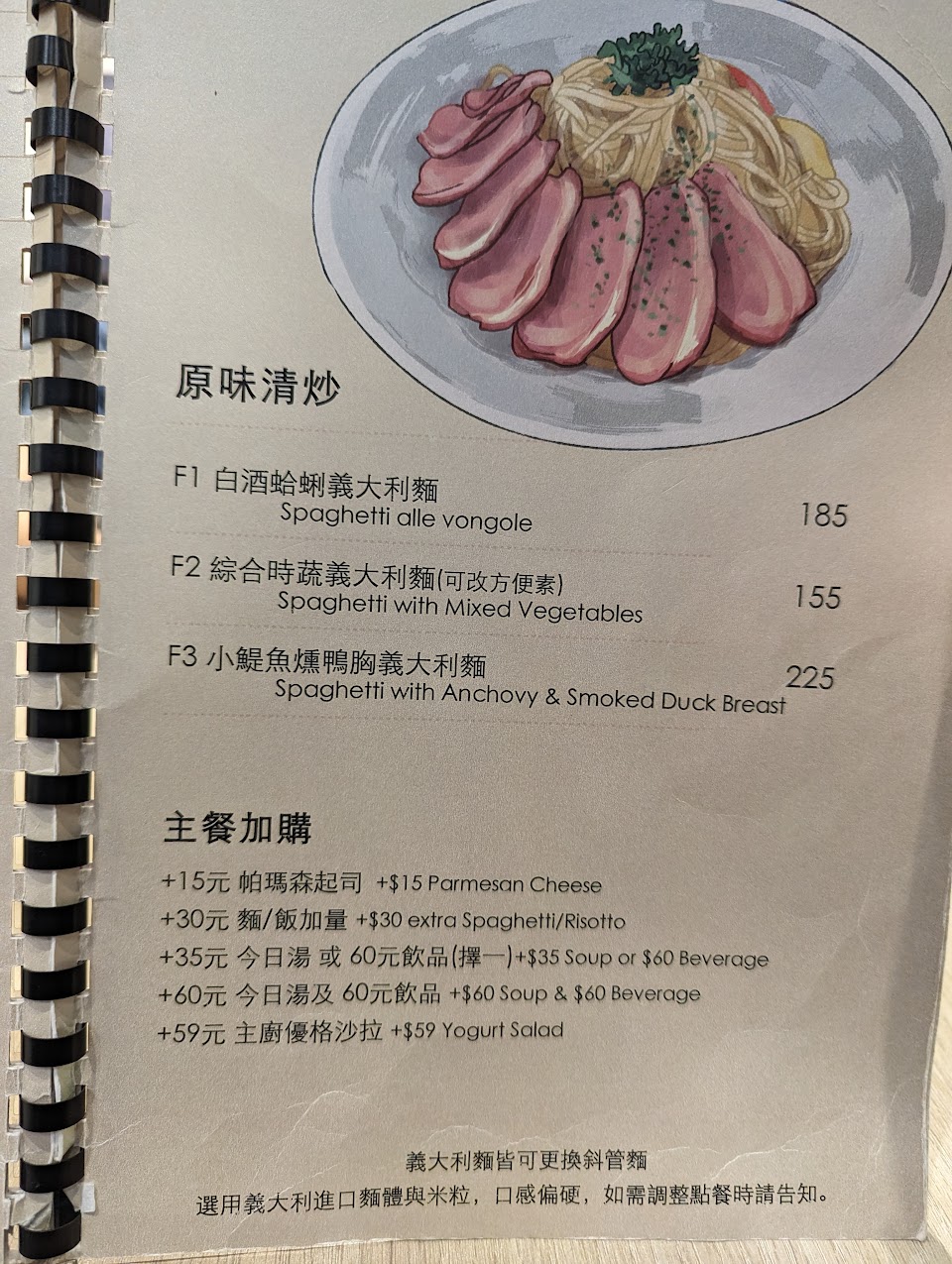 F3 小鯷魚燻鴨胸義大利麵 $225(+$30 加麵)