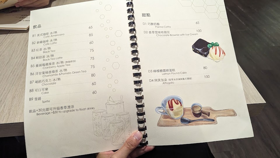 今日湯是番茄湯,飲料選擇冰美式咖啡($65)所以套餐要再補5元。