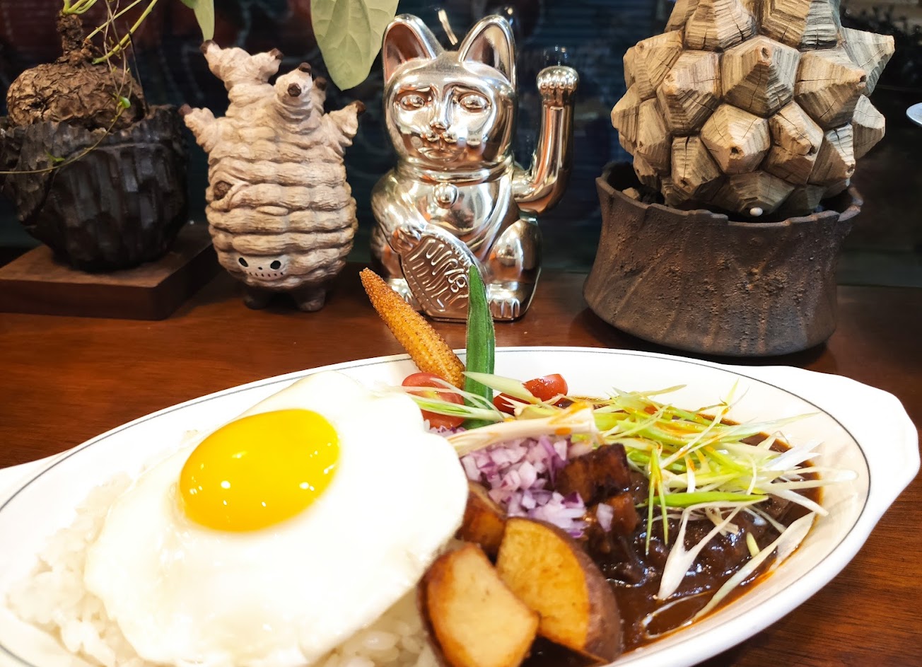 咖喱超好吃,有別於其他咖喱,完全不會油膩,很順口,炸薯塊也很推薦,喜歡塊根植物的人更要朝聖,老闆收藏了不少塊根植物,吃飯之餘可以邊欣賞老闆的植物收藏,大推!