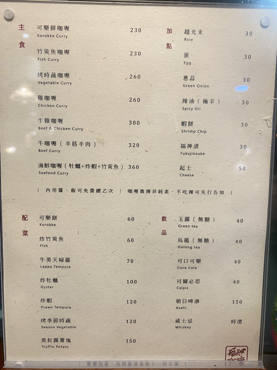 咖哩價位約:150~300