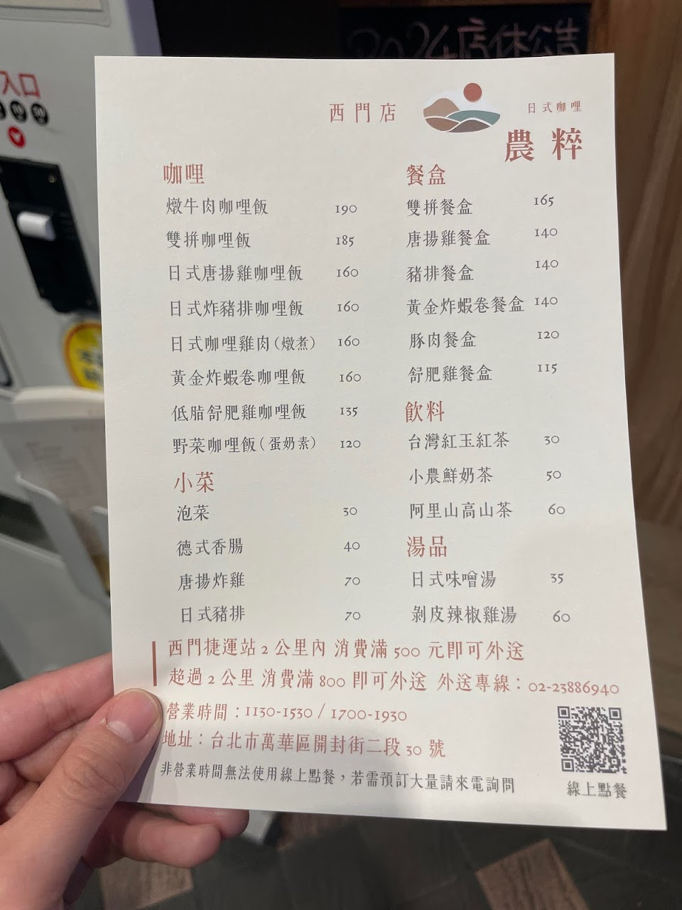 2024最新在地推薦餐廳的菜單_農粹日式咖哩 西門店的菜單、圖片