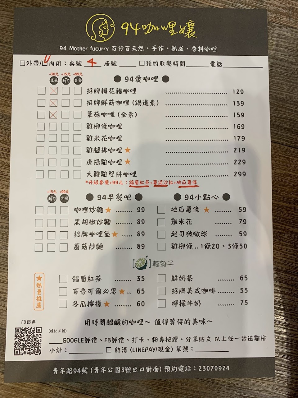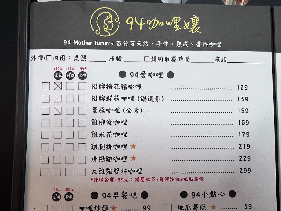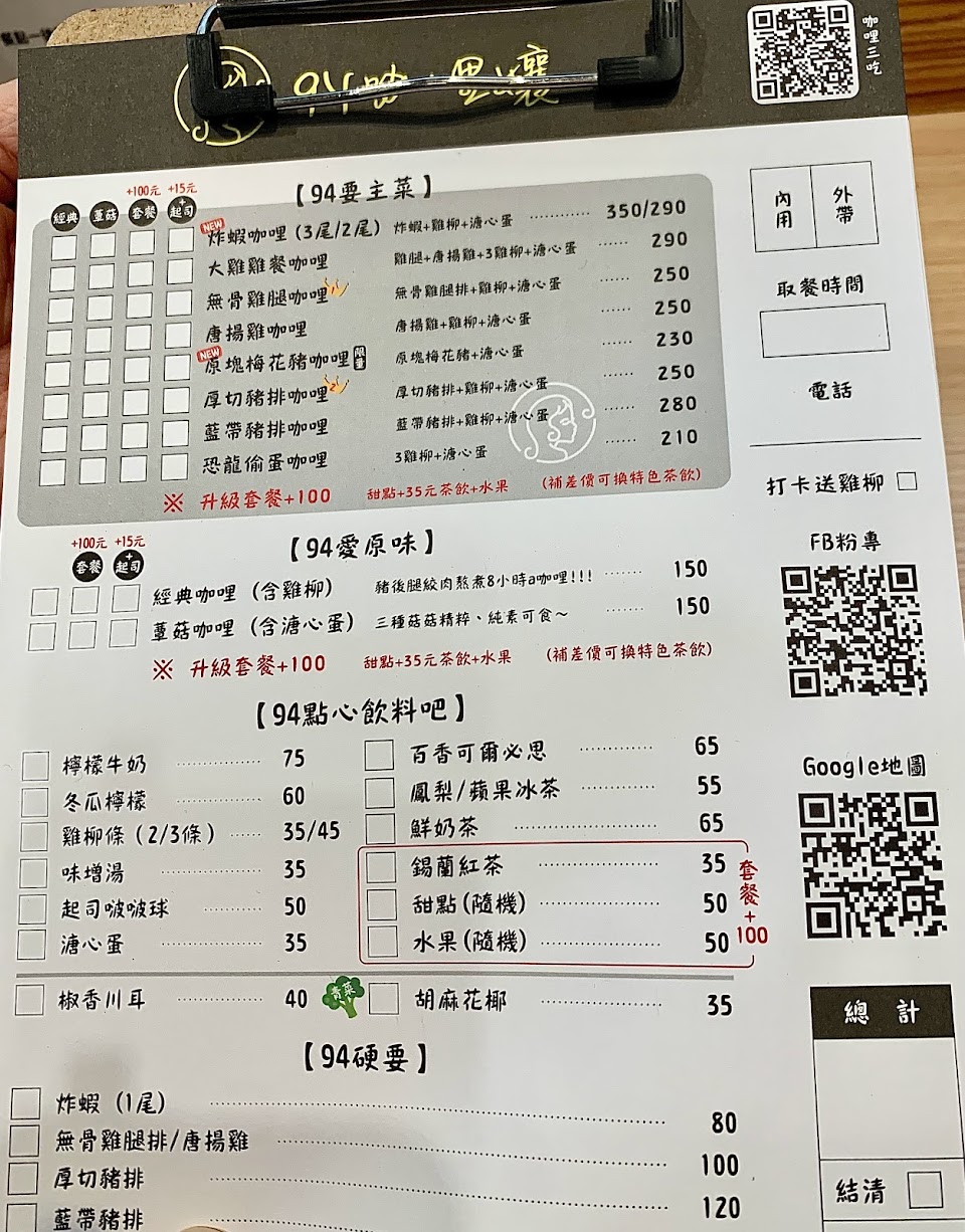 2024最新在地推薦餐廳的菜單_94咖哩孃 青年加盟店/香料手作熟成咖哩的菜單、圖片