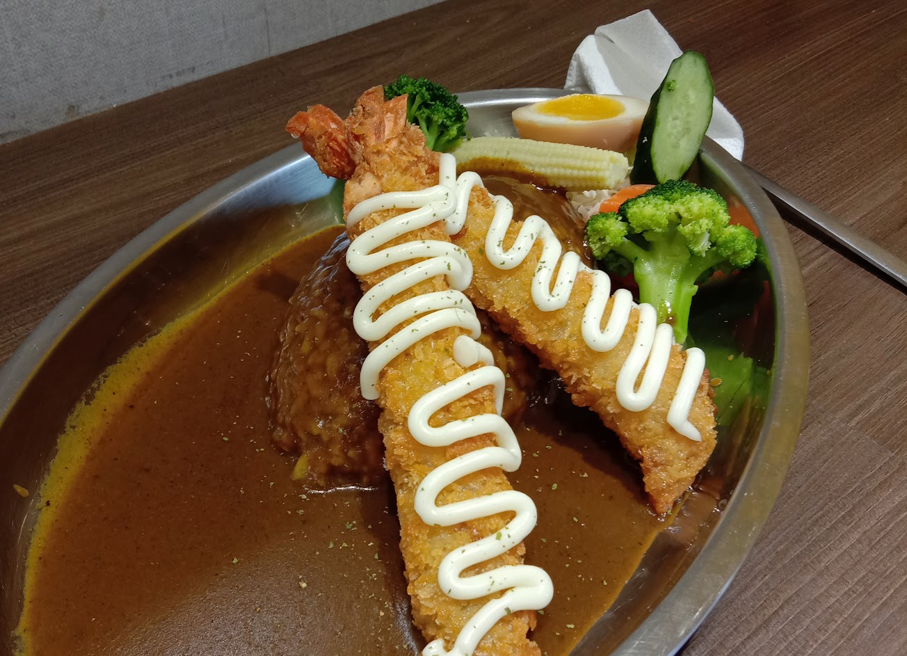 咖哩好吃 但醬量有點少 吃到後一半飯還很多時 醬確快沒了. 歐姆蛋熟濕度做的剛好. 炸豬排有點薄 外層炸的偏硬 所以內層咬到的肉感不明顯. 雙拼多60只有多一隻不算大的蝦 整體來說價格偏貴 內用座位只有5個是半室外 下午只有一個人在 人還滿親切的.