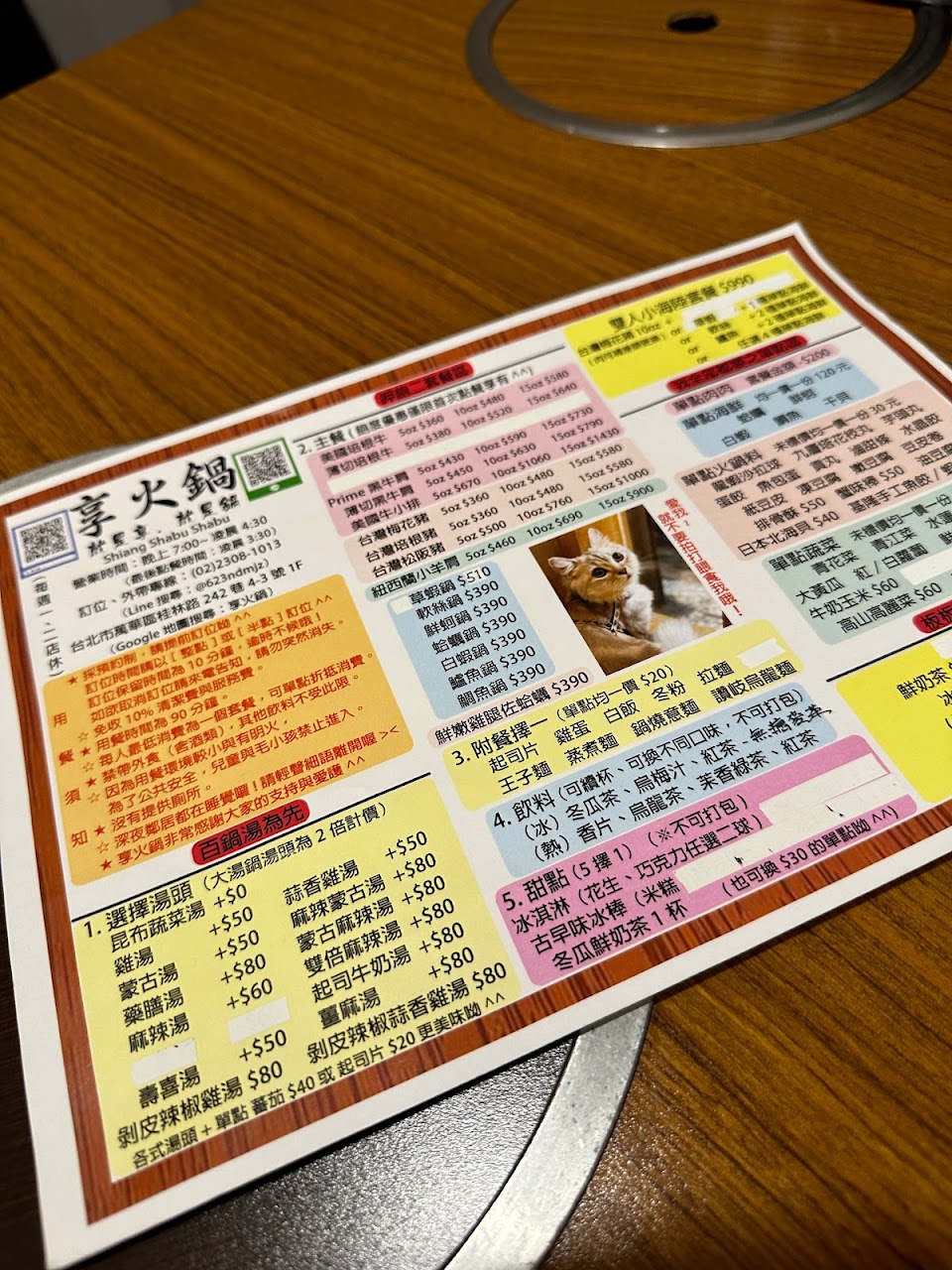 2024最新在地推薦餐廳的菜單_享火鍋 | 全預約制 Line:@623ndmjz | 每週一、二固定店休 | 疫情期間,入內前請先稍候,將會先為您手部噴酒精與帶位^^ | 因環境與空間因素,身體不適、兒童與寵物請止步 | 沒有提供洗手間的菜單、圖片
