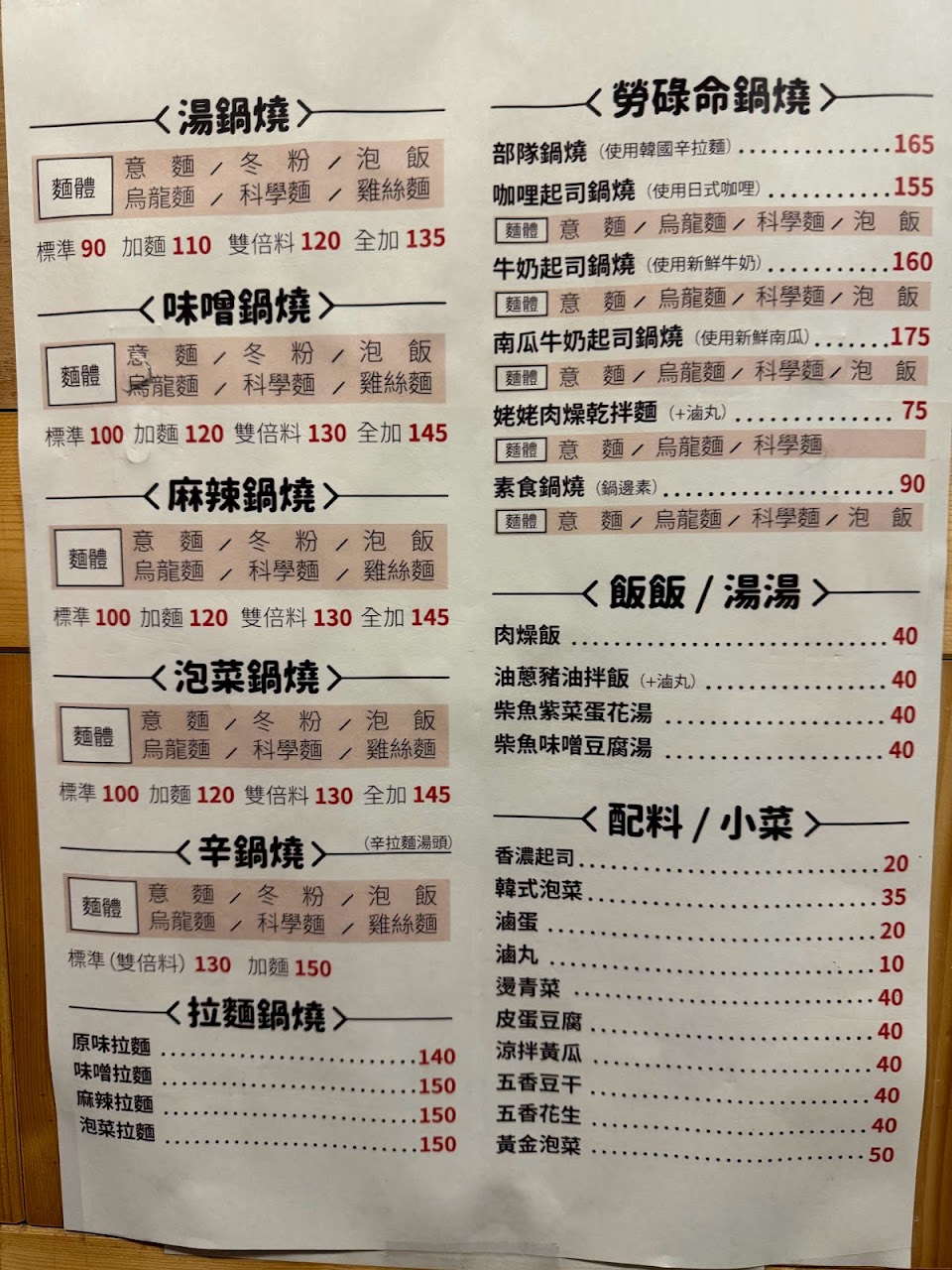 2024最新在地推薦餐廳的菜單_勞碌命鍋燒意麵(隆昌店)的菜單、圖片
