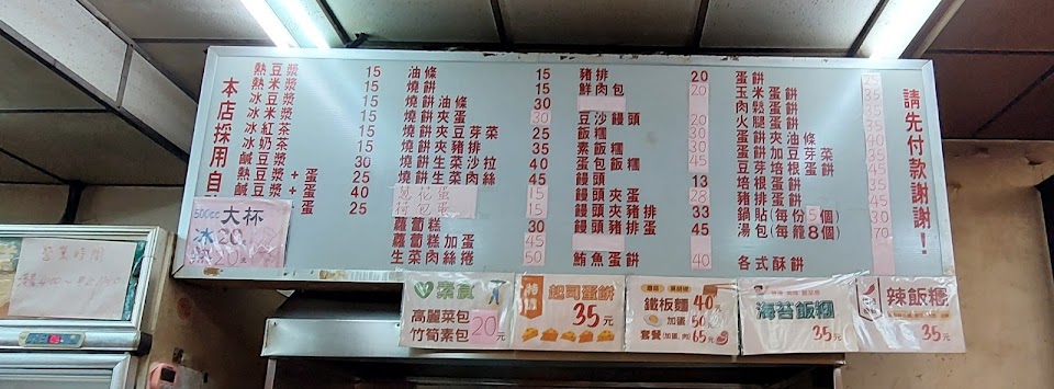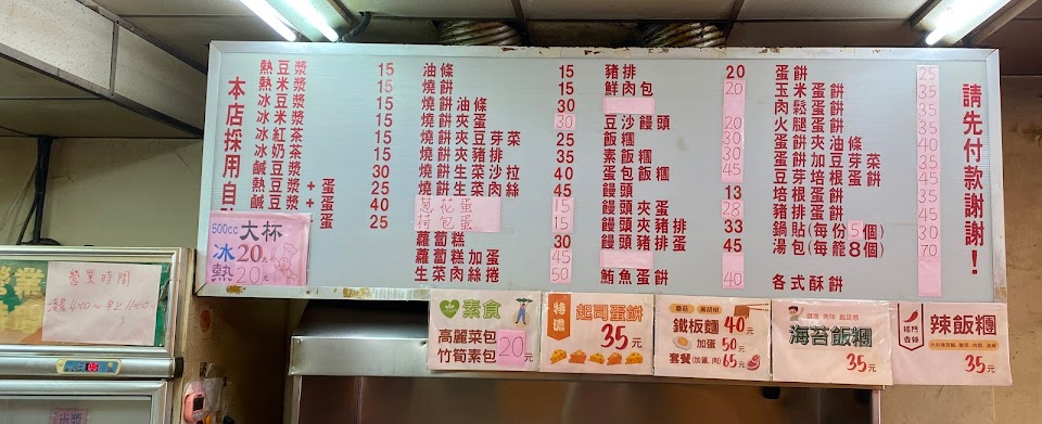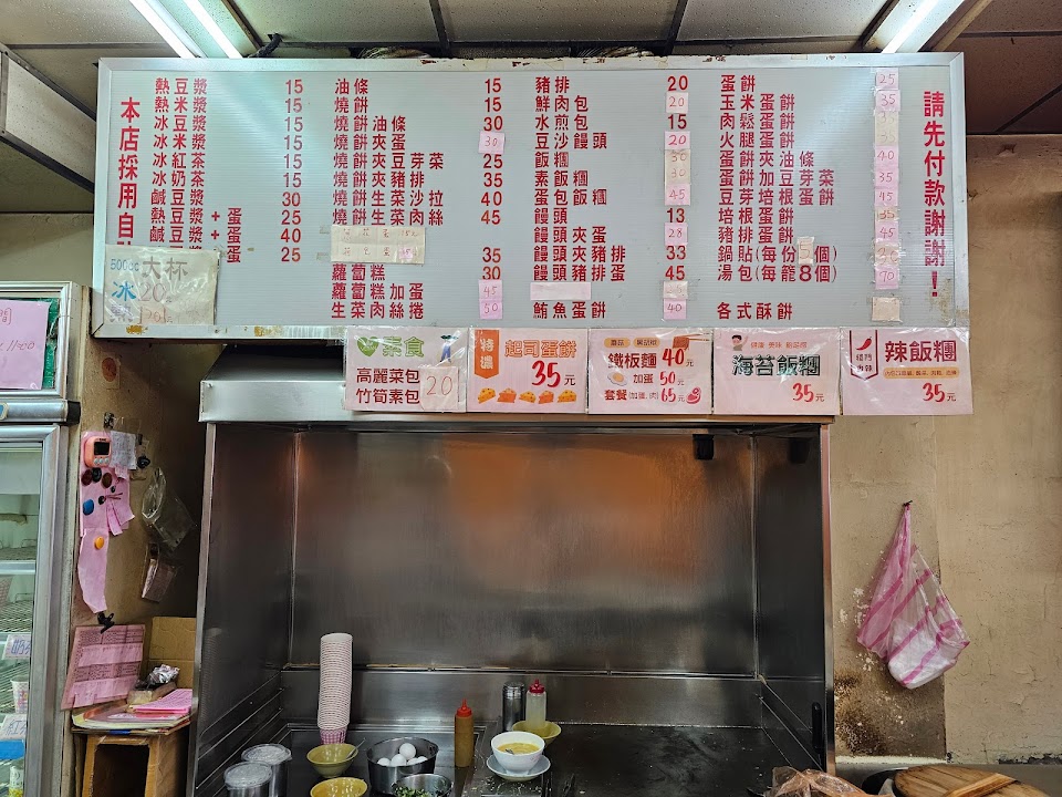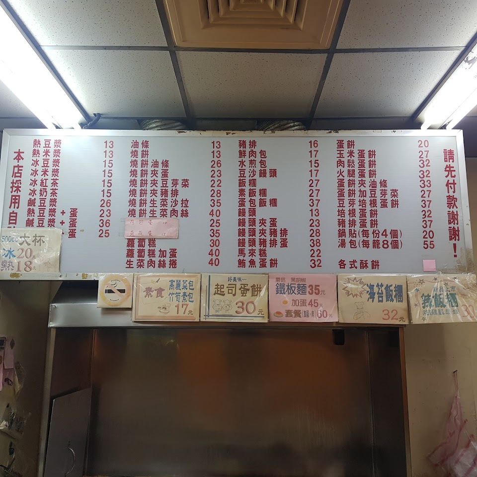 在台灣的老家附近,每次回台都會來吃。不是有名氣的豆漿店,但就是那種在不起眼的住家附近轉角的中式早餐店。服務的阿姨們從我有印象都一直是那幾位。豆漿, 小籠包,飯糰,培根蛋餅是我平常愛吃的,早餐種類豐富,吃得滿滿家鄉味。? …
