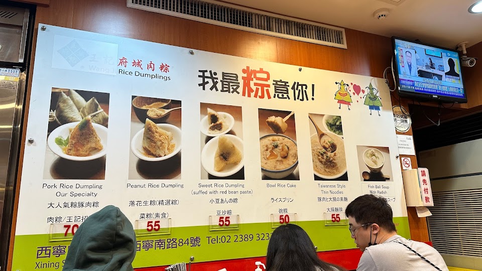 我非常喜歡王記府城肉粽在西寧南路和成都路口的華南銀行對面。 服務人員的態度很優資,當然粽子和湯類的組合多樣是一絕,價格適中。約115元可飽一餐。 適合各類人仕前往品嚐,正餐或點心均宜。