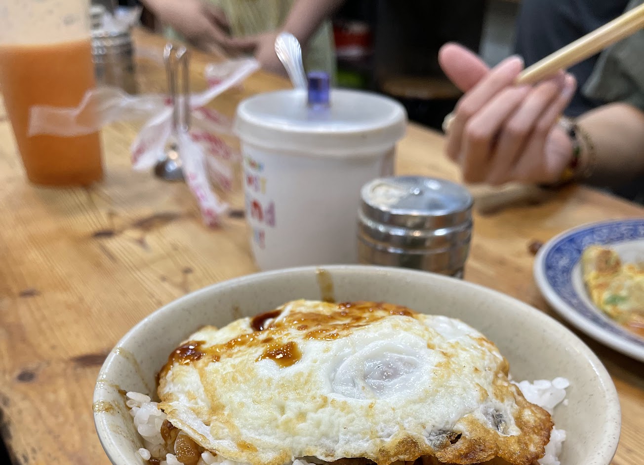 推薦蚵仔煎跟滷肉飯,尤其一定要再加顆半熟蛋在滷肉飯上。