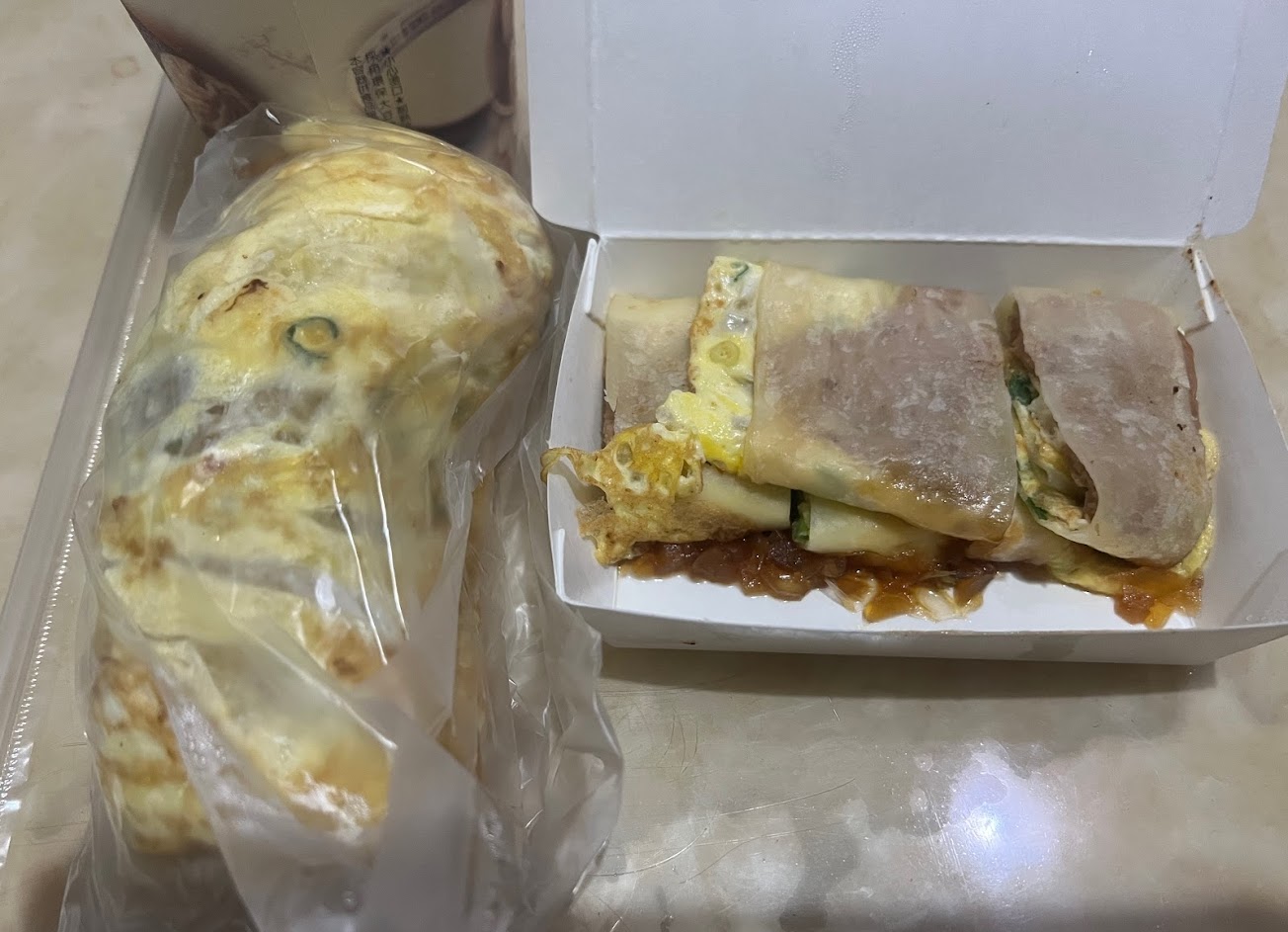 喜歡吃他們的飯糰加蛋,蛋是煎好整個包在飯糰外面,很特別,也很好吃,豬排蛋餅也好吃