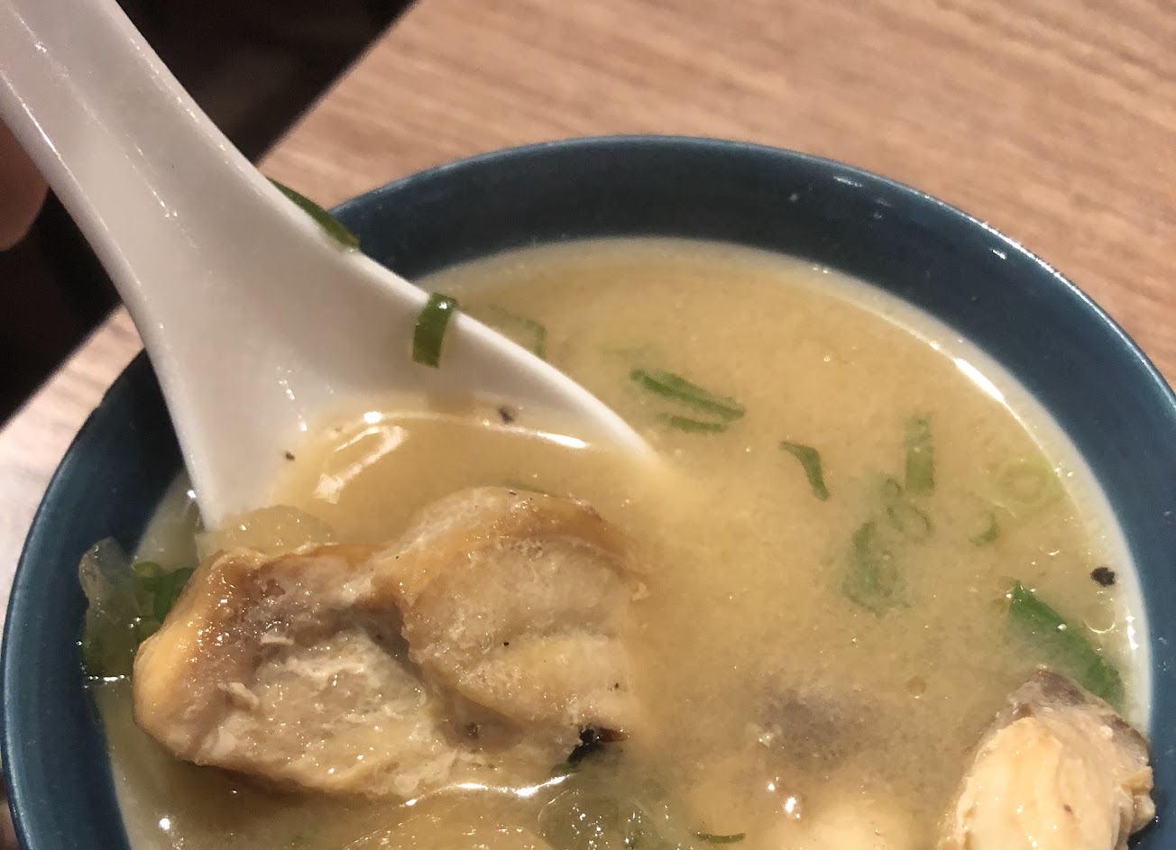 味噌魚湯: 用料非常大方,滿滿的魚肉, 可惜卻沒有味噌湯該有的味噌味…