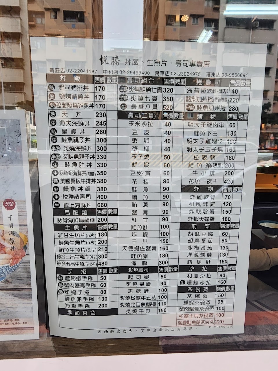 2024最新在地推薦餐廳的菜單_悅勝 丼飯、生魚片、壽司專賣店-萬華店的菜單、圖片