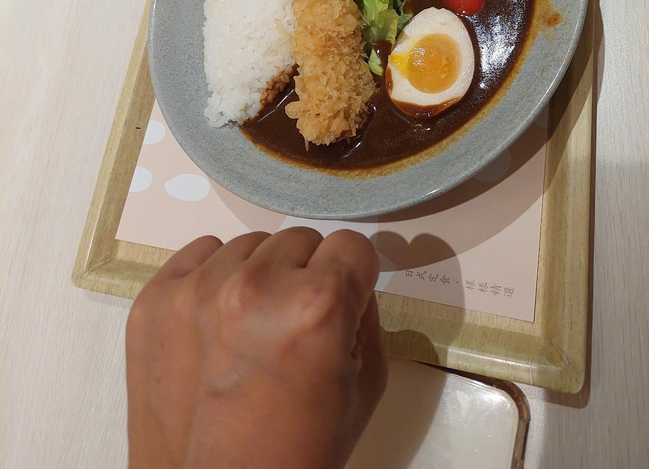 黑咖哩天婦羅飯的表現也是中規中矩,不是偏甜的咖哩也不會辣。