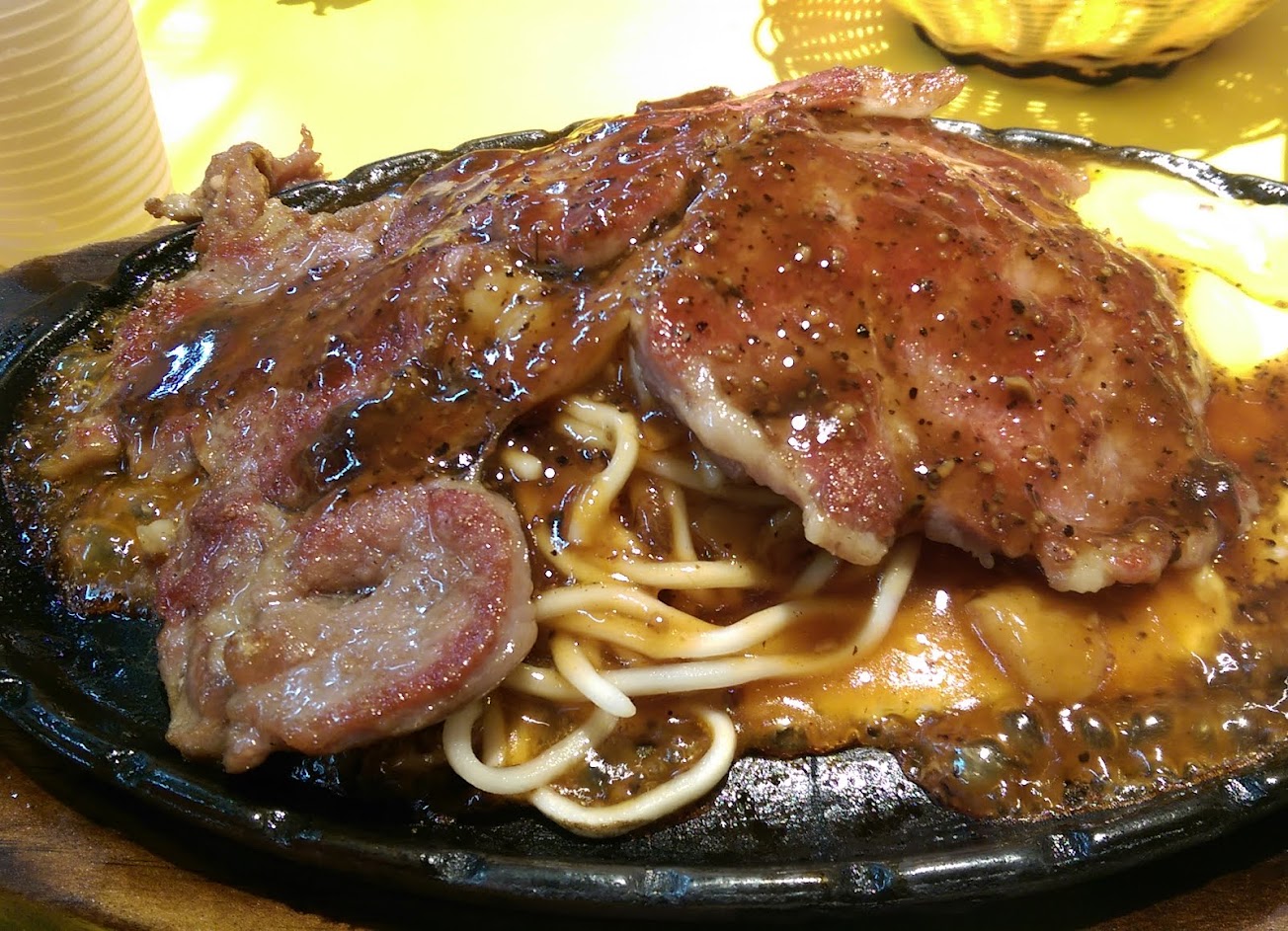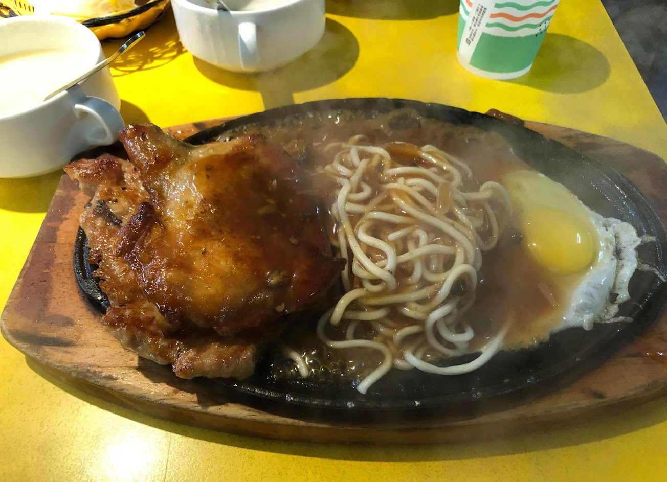燒焦的豬排跟燒焦的鐵板麵。