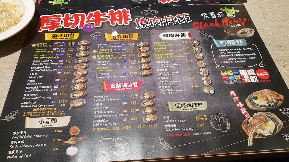牛排超級好吃,濃湯好喝,吐司喜歡吃,非常推薦喔~ 其實每個消費者喜歡的口感不同,今天有一個說喜歡很滿意就会有一個說不滿意,換做自己去別地方當起消費者一樣的態度,都應該去值得被尊重去聽取別人的意見,還有也要尊重廚師啊,廚師每天忙著,冒險跟油煙味煎給客人,還要洗刷客人吃完的盤碗,是一件很辛苦了工作,每個廚師心願都很簡單,就是希望大家吃開心,賣的出去,雖然消費者很重要,但喜歡吃的顧客,吃上一次ok就会有下數次當上老顧客,本來嘛您不喜歡吃,難道還会去吃嗎?這一定肯定了,只是希望別惡意去品論廚師怎麼樣,再怎麼樣也為了自己留著口德,像我去買吃了,不好吃也就這樣,沒有去指手畫腳把店家報出來品論讓大家都別去那天店吃飯了?大家心裡有數,餐飲業本來就競爭很大,也不會因為您一句話打退所有支持愛好?的人,而且講真的蒜頭麵包跟玉米濃湯和飲料都無限暢飲,其實很賠本,但老闆就是好做人,就是要把最好的給大家吃,希望大家吃的滿意才会注意大家的品論來改進,試問您要去哪裡找這麼好的老闆,我第一次吃時候就非常滿意,肉質好吃而且吃很久都沒有膩,配醬跟玫瑰鹽都很搭,蒜頭麵包沾上玉米濃湯超好吃滴,您可以試試看,我只是路過看看我2年前2019年緣份相遇留下我保貴留言(*๓´╰╯`๓)♡?? 服務 內用 餐點類型 晚餐