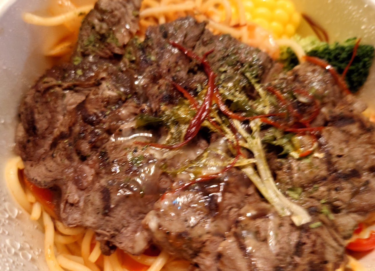 義大利麵有麵香及勁道,醬汁酸度剛好,除了番茄的酸味,還帶有蔬果的甜味來中和,整體順口。沙朗切片肉質軟嫩多汁,醇香的肉質口感令人回味再三。