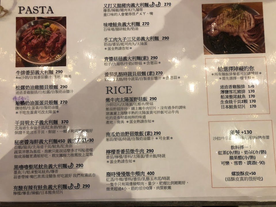 義大利麵很實惠又好吃,用料也給得很大方。 餐點:4 服務:4 氣氛:3
