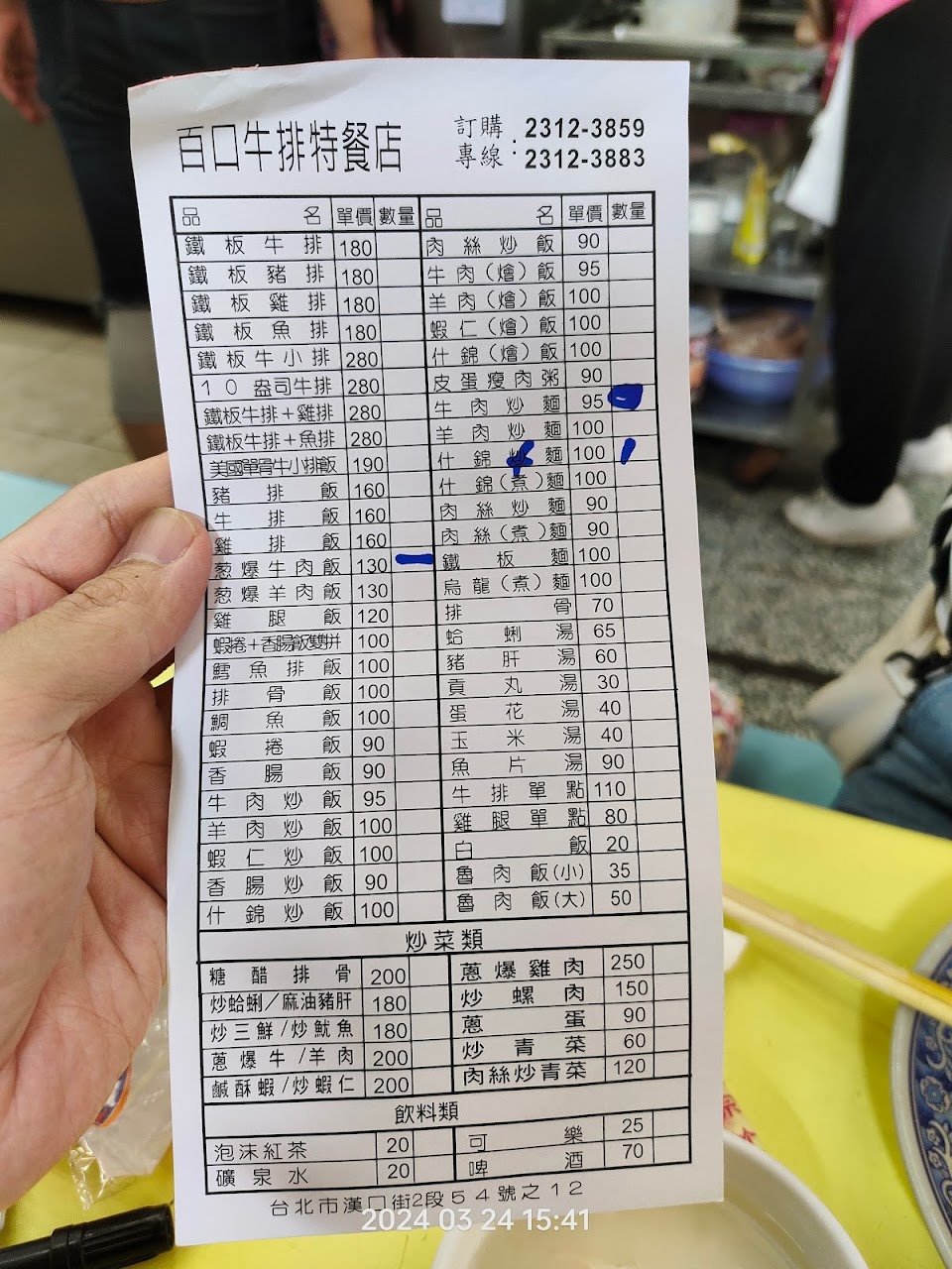 ?點選餐點:招牌牛排飯、單點雞腿、肉絲炒飯