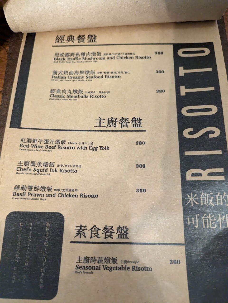 用餐採預約制,須要預付部分訂金,今年起改變營業方式為可選擇主菜的無菜單料理,食材當日採買,餐點現場製作,需要較長的等候時間。
