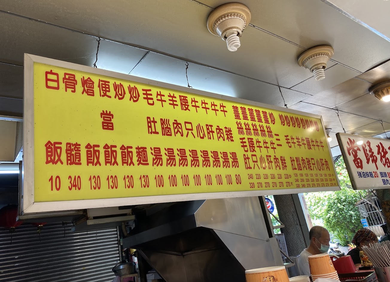 炒牛肉(大):大量的青菜搭上牛肉片讓筆者偷吃的罪惡感減少很多,配上一碗飯真不錯,牛肉湯較清淡肉有嚼勁冷天喝不錯,炒牛腦(小)炒出甜味的洋蔥 裹了粉煎出酥感的牛腦 用醬油焦香提味,這筆者很愛(但也最不該吃……),炒牛雜比較奇妙……裡面筆者吃到一塊牛腸其餘都牛筋跟薑絲豆鼓……但還是很好吃,如果看倌也喜歡內臟料理可以來這家試試口味。(老老闆可能年紀大了點菜時記得要確定一下內容!)