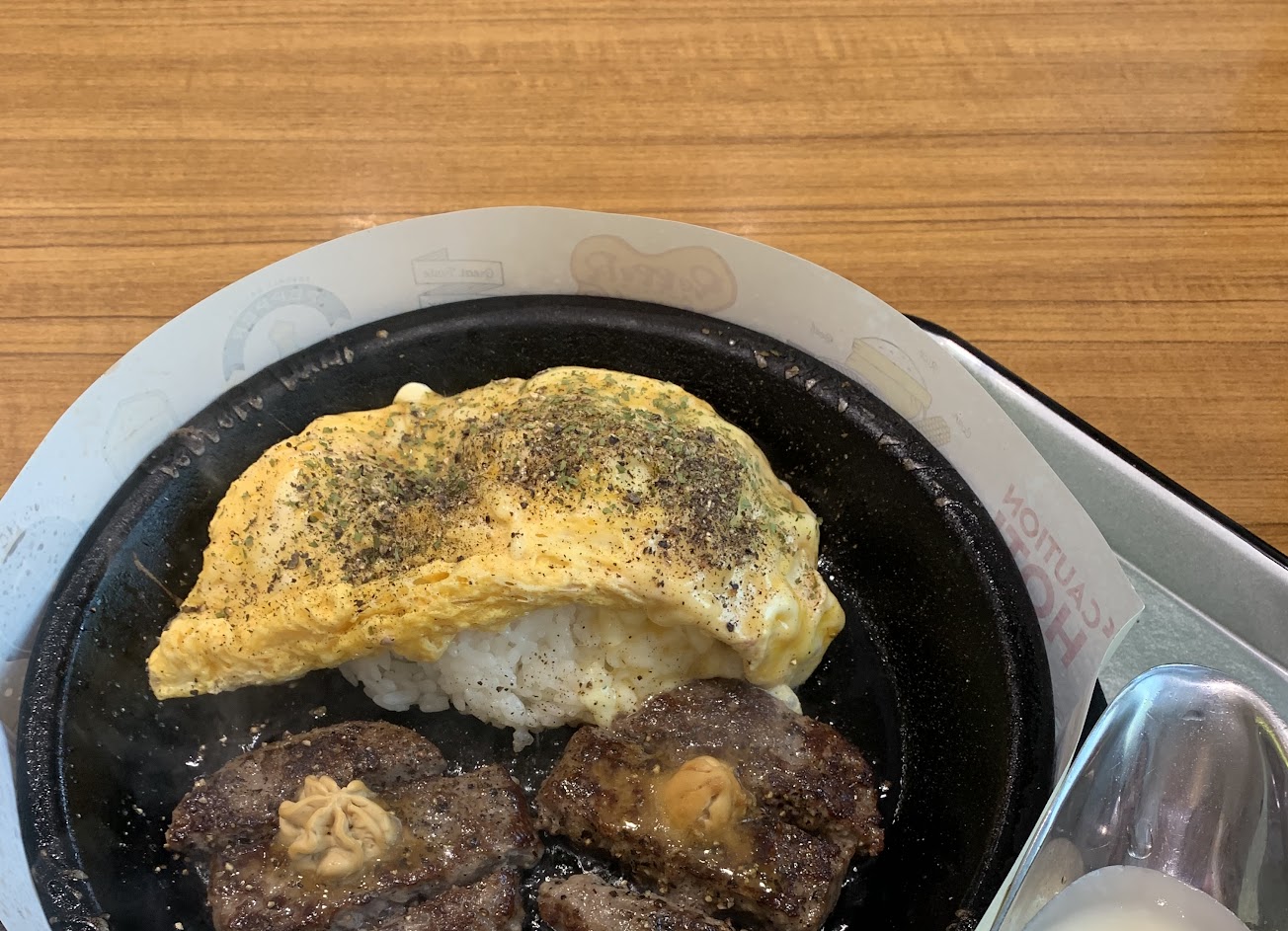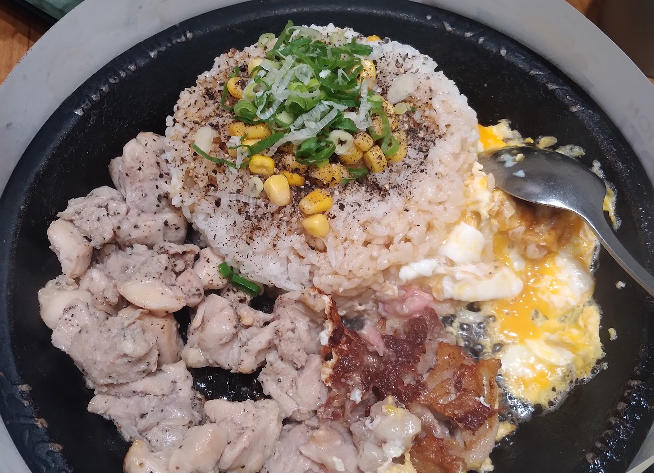 今天點了加量胡椒牛肉 鐵板+生肉+奶油炒飯 伴勻後又香又嫩 稍微壓久一點還可以吃鍋巴
