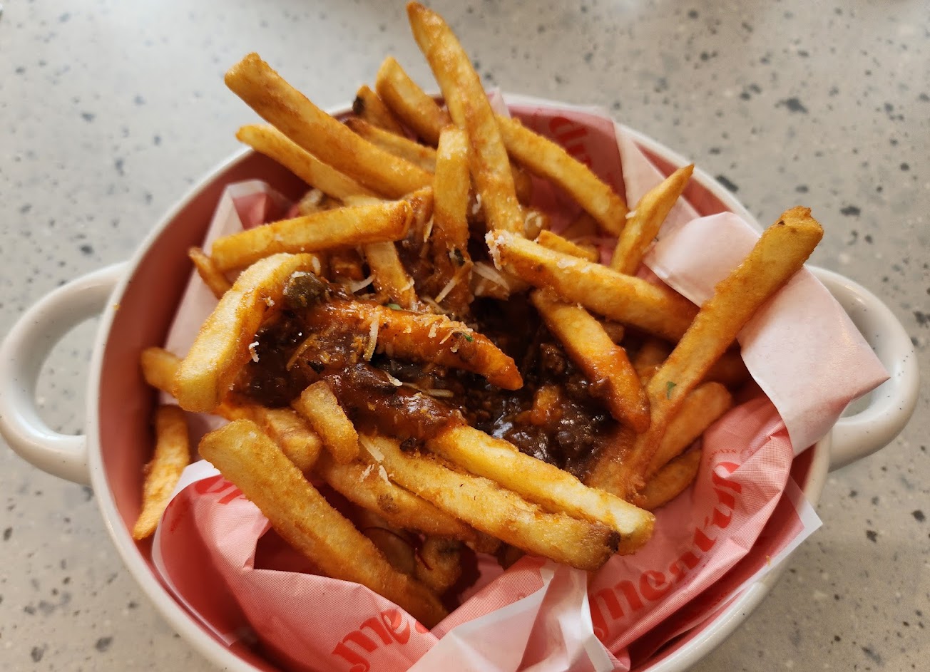 ?起司肉醬薯條不錯吃,薯條搭配肉醬,不易膩口