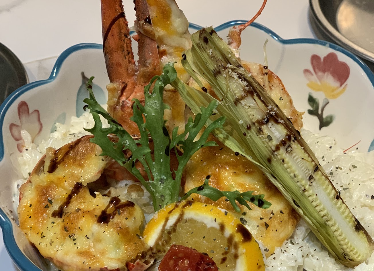 #明太子奶油炸蝦燉飯 $340