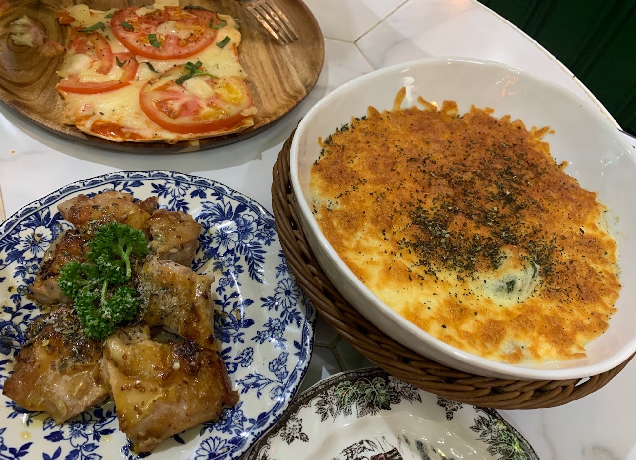 環境寬敞,服務人員態度很好,點了雞腿排義大利麵,雖然雞腿排沒熟,但有馬上還一份新的給我們,還多送了炸薯條!另外明太子炸蝦燉飯非常好吃!一定要加焗烤!