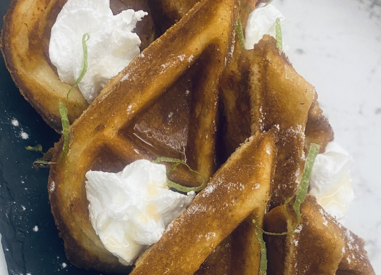蜂蜜檸香麻糬鬆餅 清爽檸檬香氣搭上蜂蜜麻糬 吃完鹹的用甜點結尾超幸福 我喜歡包麻糬吃起來有層次感