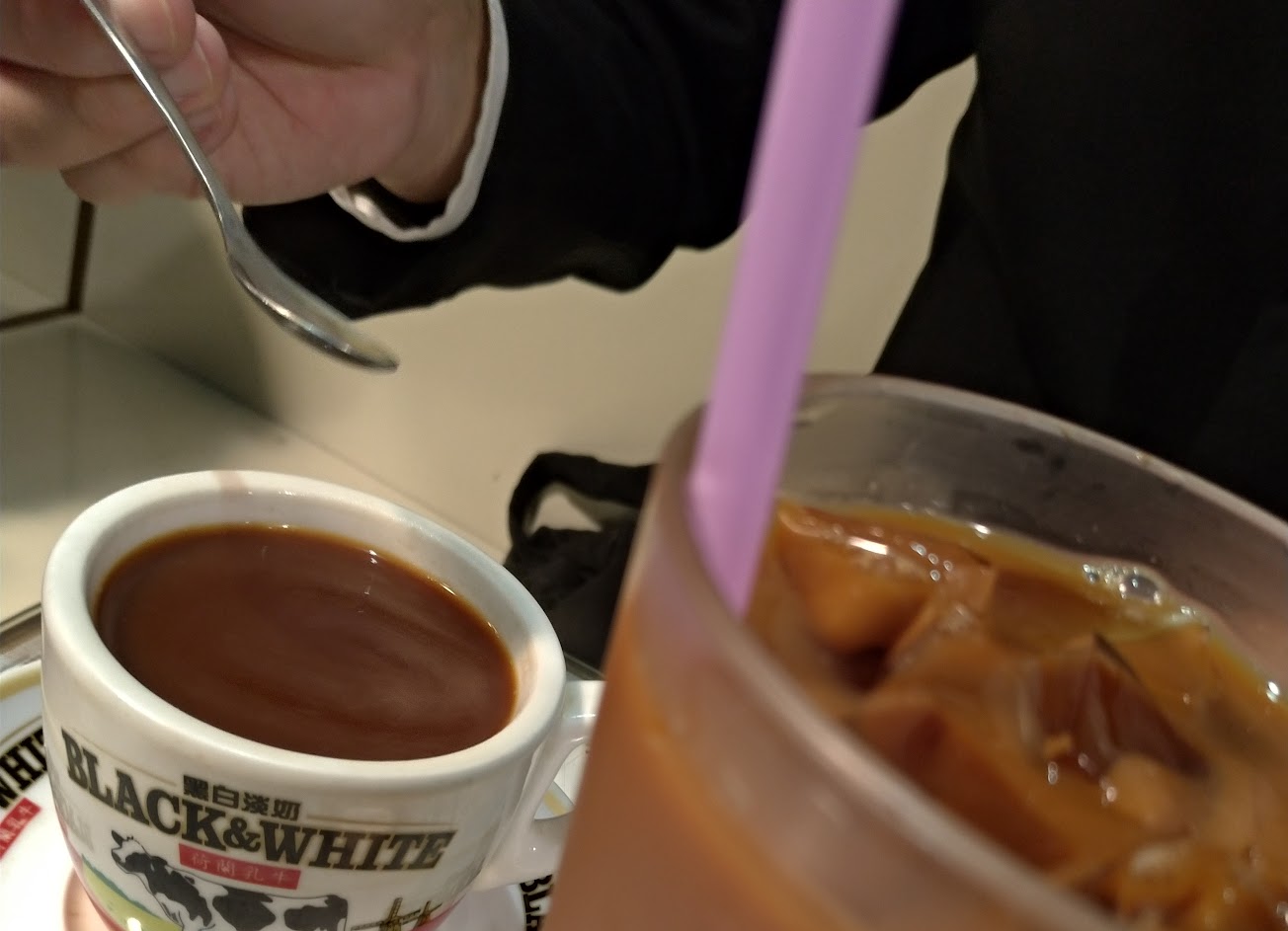 經在台港人推介,光顧了兩次”維記茶餐廳”~ 詢問之下廚師及服務員都是台灣人,唯老闆是來自香港,看得出他很用心地在餐廳裝潢、餐牌、食物上,刻意地突出香港特色,例如門口會貼有類似”飲x男女”的報道吸引顧客,飲品名稱都是港式地道叫法:鴛鴦、龍鳳檸樂、奶占多等等(同時附有備注解釋),座位都相對擠擁,就連服務員大部份都是沒笑容、行動急促,整個氣氛很香港味呢!