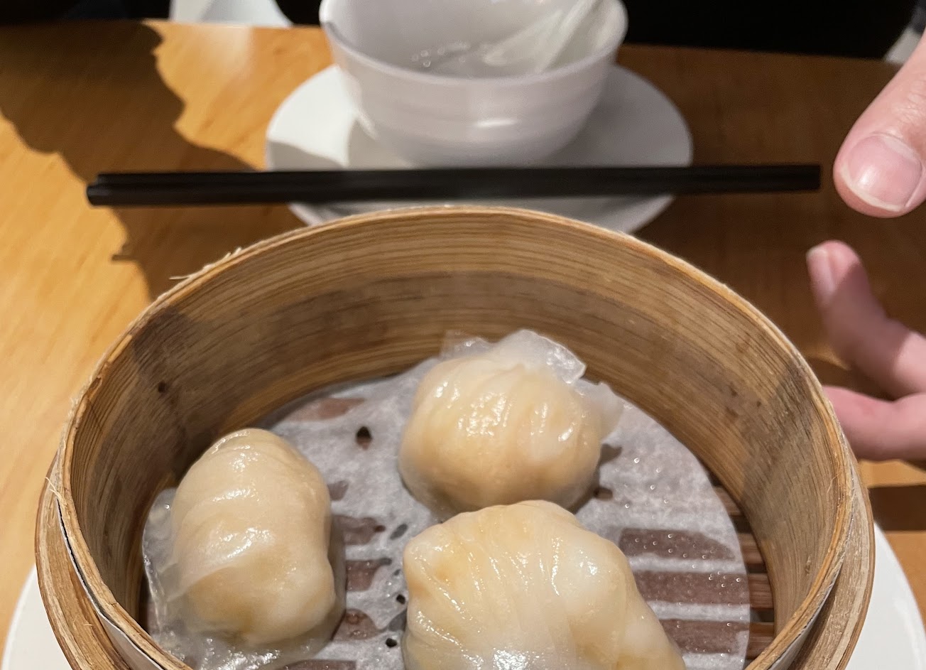 XO醬炒蘿蔔糕算表現比較出色的,加上韭黃和薄煎蛋皮,算過關。 牛肉炒河粉(乾炒牛河)很一般,算不上難吃,鑊氣稍嫌不足,通常是加老抽上色調味,沒見過炒出來是橘紅色的河粉,不知道是加了什麼去調味。 蠔油芥蘭的菜土味很重,處理的不好。 蜜汁叉燒酥表現很差,完全沒有港式叉燒酥應有水準。 蝦仁腸粉的蝦還算新鮮,但腸粉皮太厚,就是河粉的口感,粉槳跟真正的腸粉差距頗大,真的不行。 烤鴨叉燒雙拼,烤鴨過關口味中等,叉燒全是筋,牙口不好的人咬不太動。 避風塘軟殼蟹,味道ok,但是蒜酥的作法跟真正的避風塘有差距,頂多7分相似。 蒸鳳爪不夠軟爛,味道吸附於表面沒有滲入裡面,且不算好吃。 蒸排骨看起來似模似樣的,口味還是差了點,10分只能給5分。 腐皮卷算好吃的,過關。 燒賣表現也可以,過關。 蝦餃尚可,也過關。 流沙包很普通,勉強過。