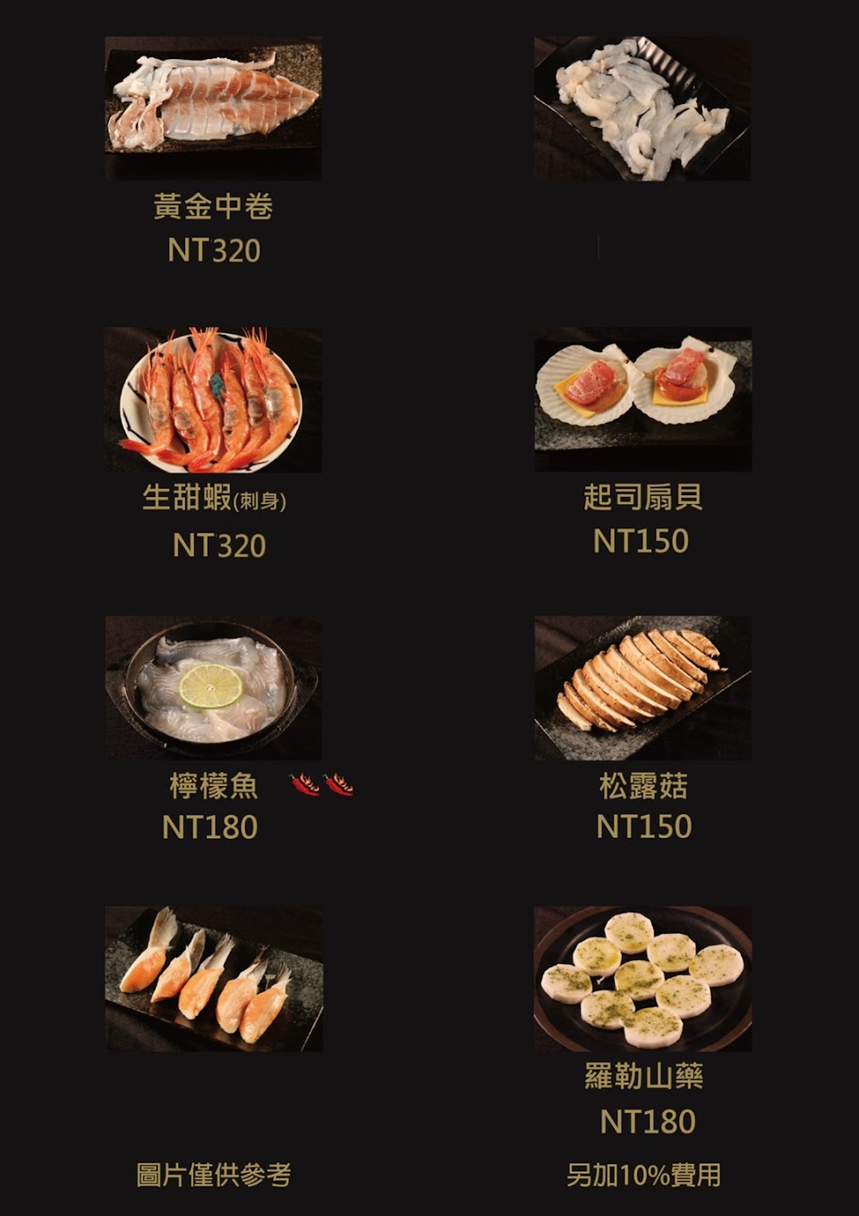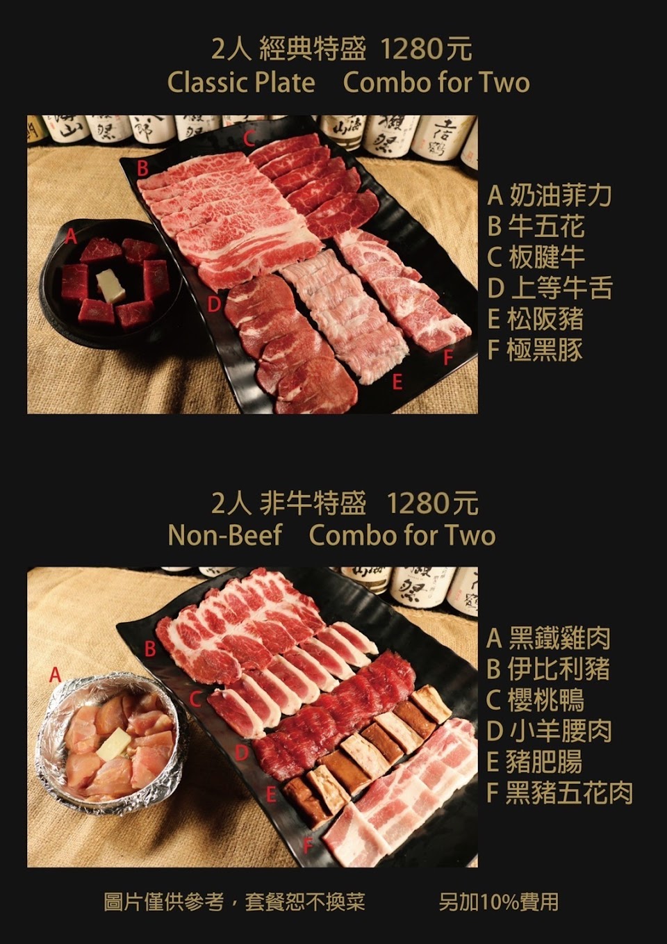 肉類:推薦極上小牛肉、松板豬、牛嫩條(巧克力牛肋條)、橫隔膜、小羊嫩腰肉。牛舌、奶油菲力個人覺得蠻普通,不推